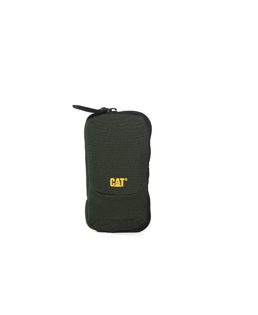 محافظة صغيرة من كات بلون اخضر زيتوني , ذات جيب واحد مع سحاب رئيسية واحد و حلقة معدنيةمن الخلف للمفاتيح