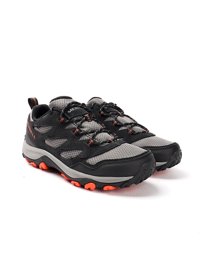 بوت ميريل من الجلد مقاوم للماء , بطانة شبكية يسمح للرطوبة من الخروج مريح جدا مع كعب مطاطي واقي , أربطة من مادة دانتيل , لون اسود